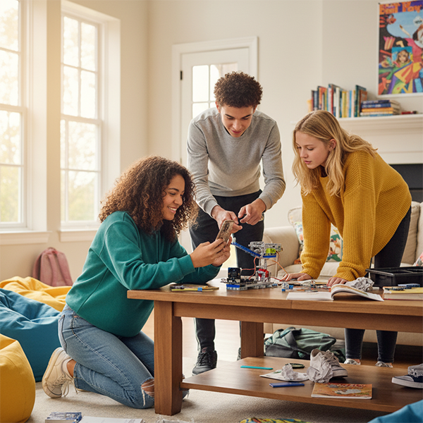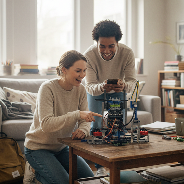 Este kit incluye la placa Micro:bit V2.0, equipada con sensores integrados, micrófono, parlante y un potente procesador. Se complementa con una placa de expansión llamada Building:bit, que facilita la conexión de motores, servomotores y sensores sin complicaciones. También se incorporan un moto reductor, un servomotor de 360 grados, un sensor de ultrasonido con su cable correspondiente, una batería recargable y más de 260 piezas de construcción para ensamblar estructuras sólidas y funcionales.