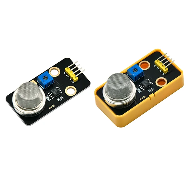 Dispositivo que incorpora un sensor MQ-2 para gases inflamables y humo, montado en un case para fichas tipo bloques de construcción. Entrega una señal analógica que varía con la concentración de gas y se utiliza para prototipos de alarmas de gas, detección de fugas, sistemas de seguridad doméstica educativos y proyectos de concienciación en seguridad industrial.